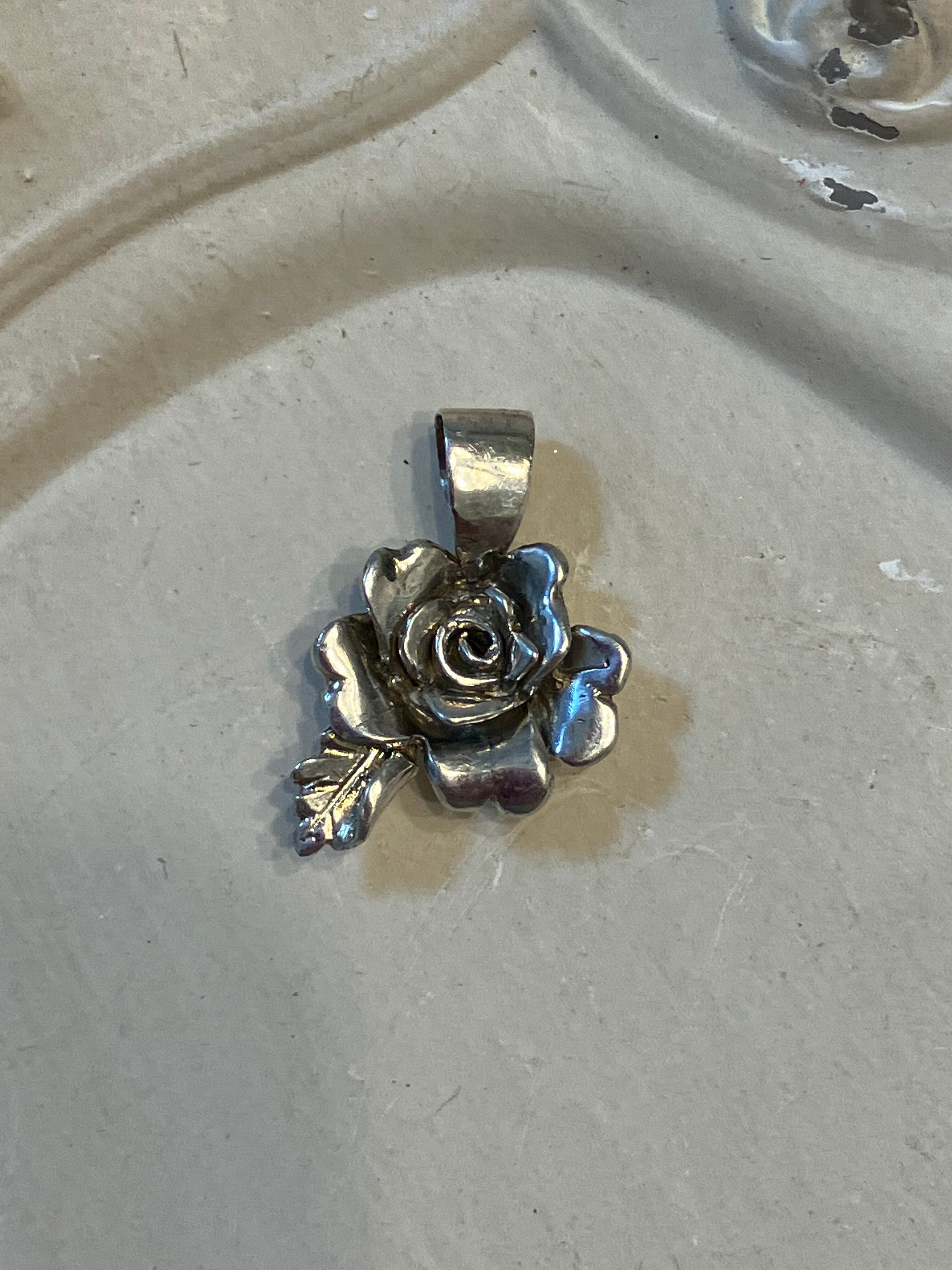 シルバー925 で作った薔薇のペンダントトップです。中心の小さな薔薇が取り外し可能で、代わりにお手持ちのチャームを入れることができます。