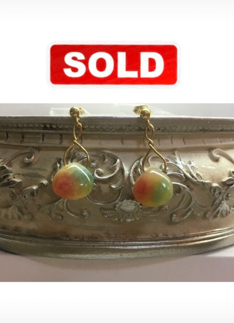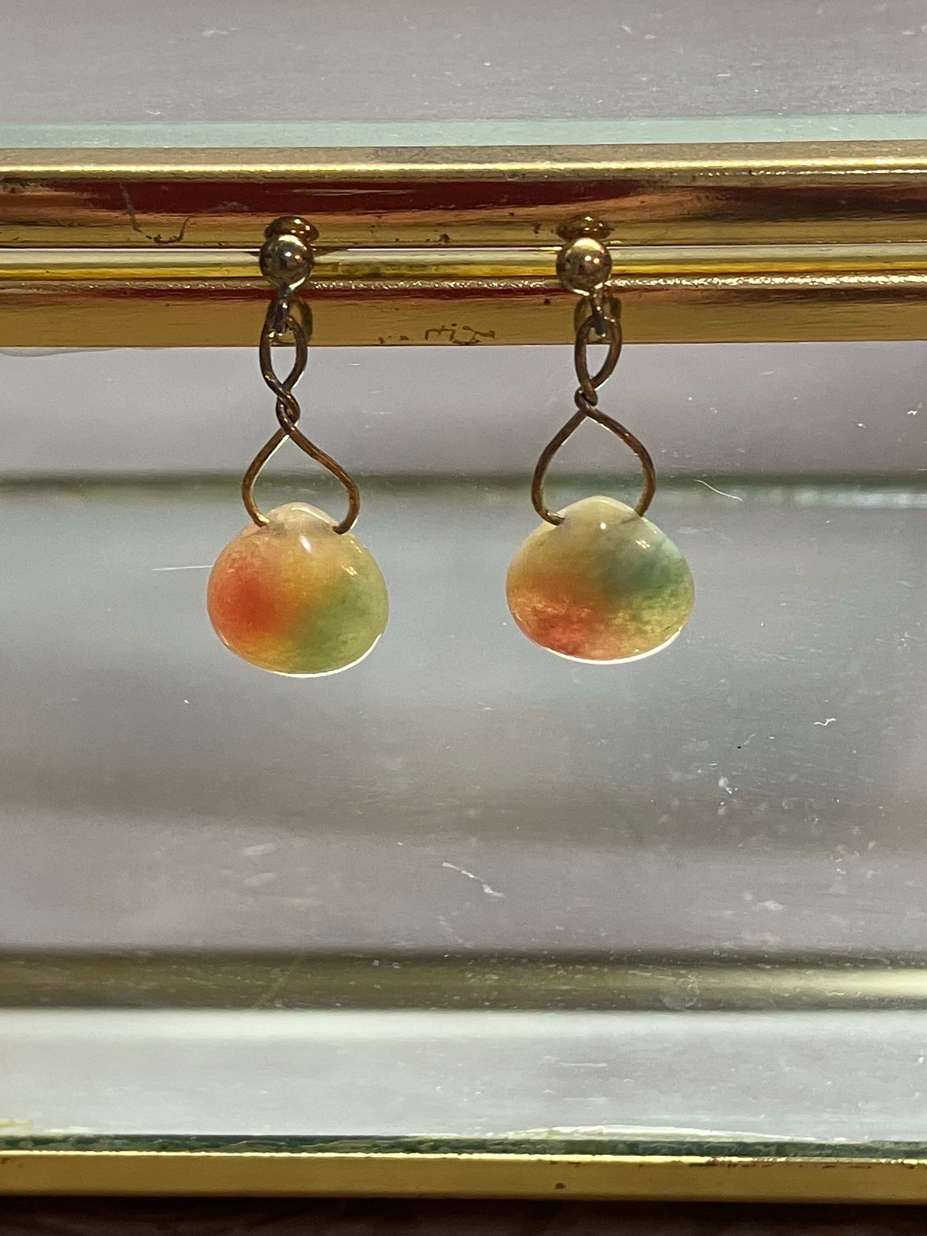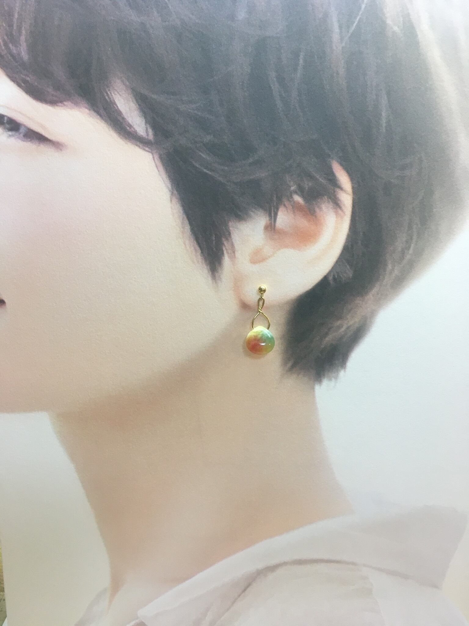 きれいに3色出ている石が珍しくて、揺れるピアスを作りました。