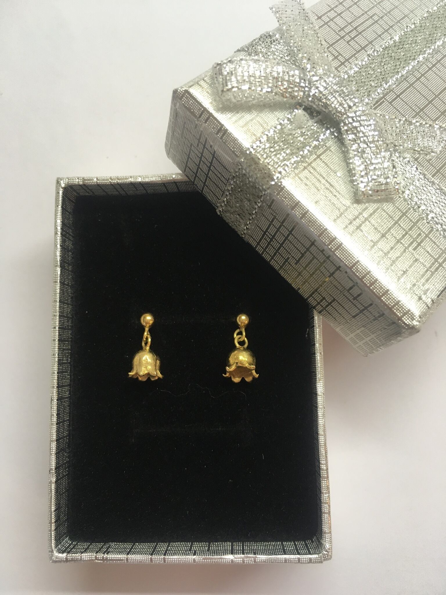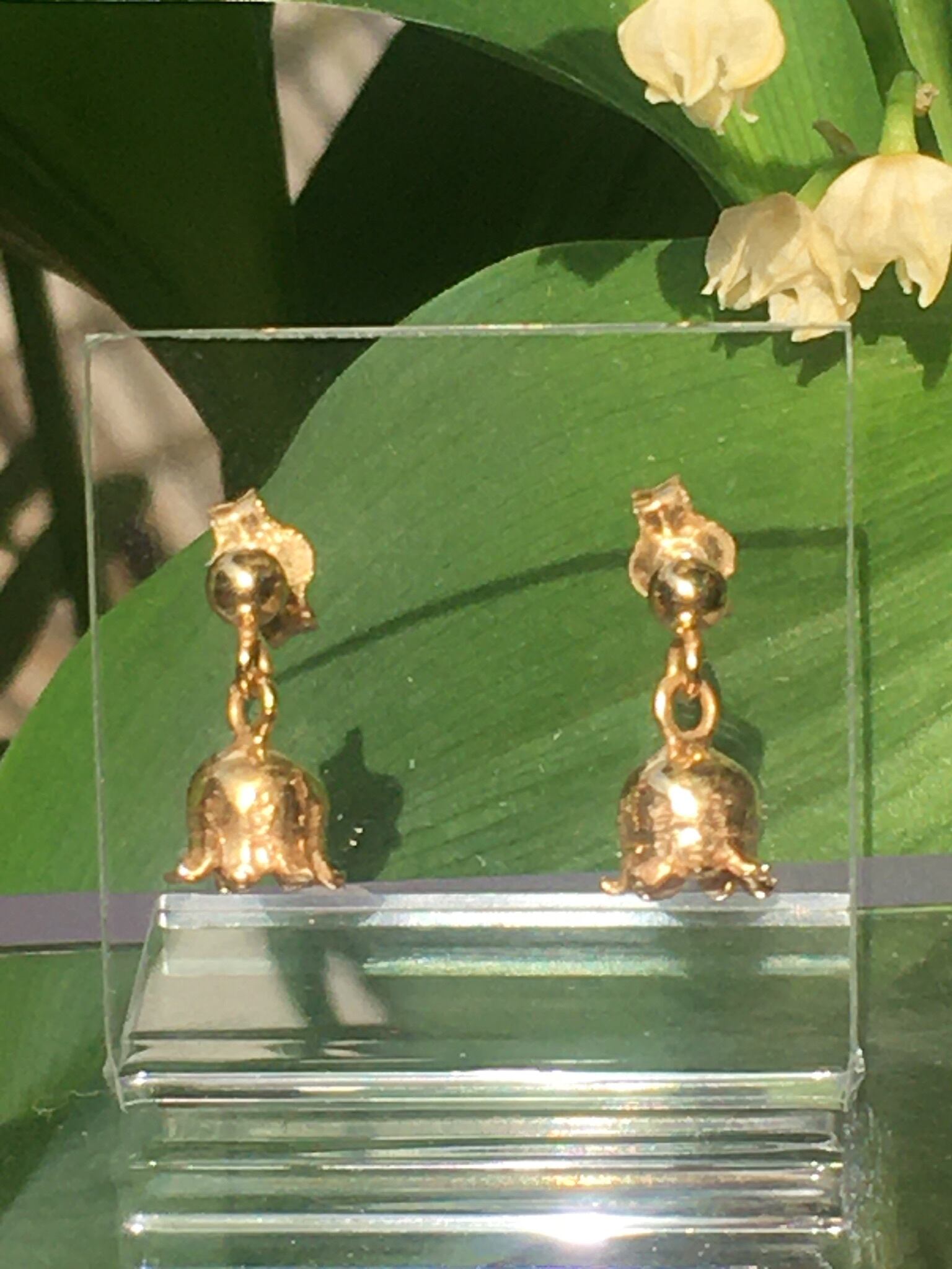 小さなすずらんの花を金色に仕上げたピアスです。耳元で揺れる金色のすずらん、素敵ですね! 大きさ:5㎜ × 5㎜ 素材:シルバー925 金メッキ仕上げ