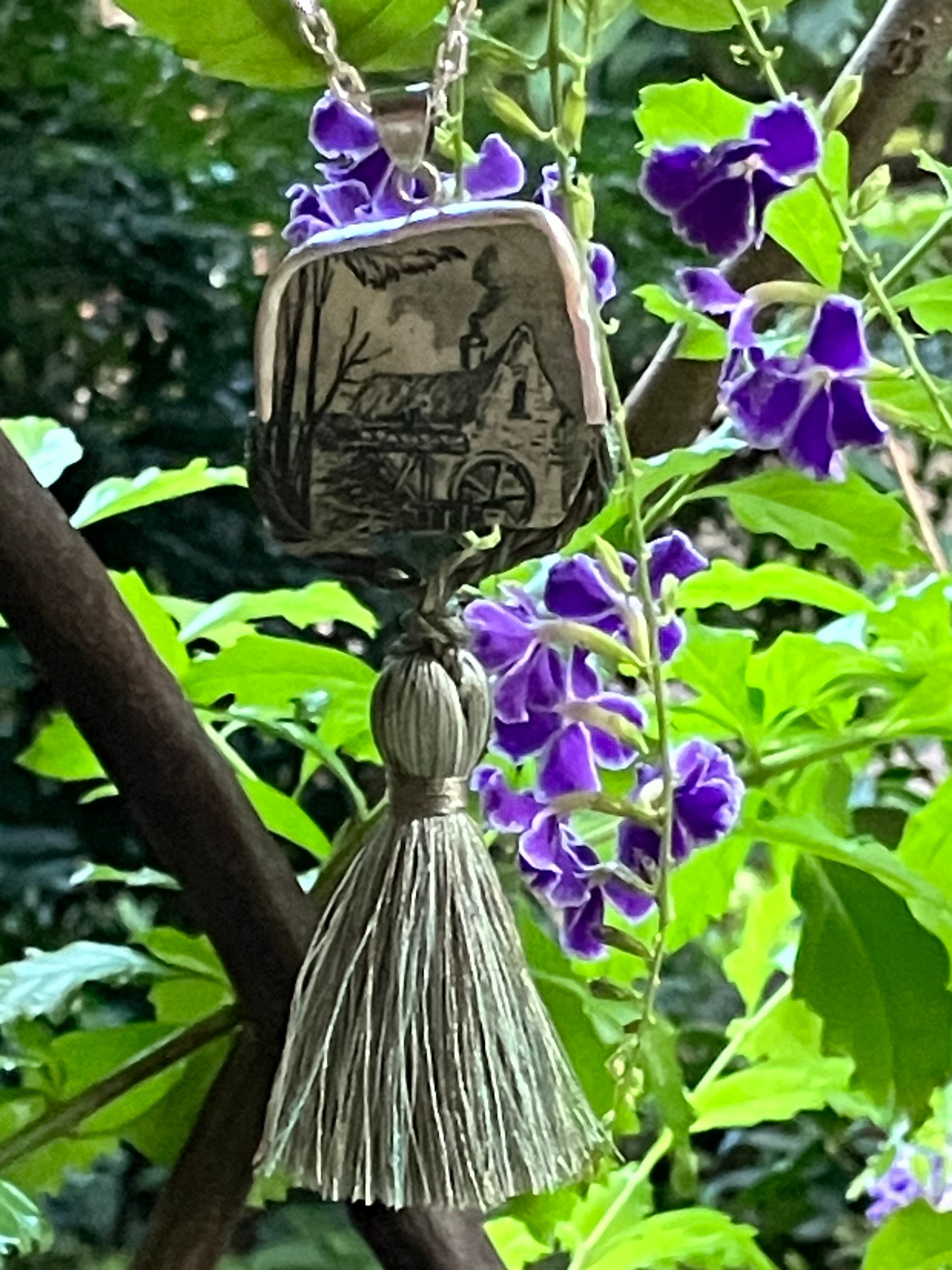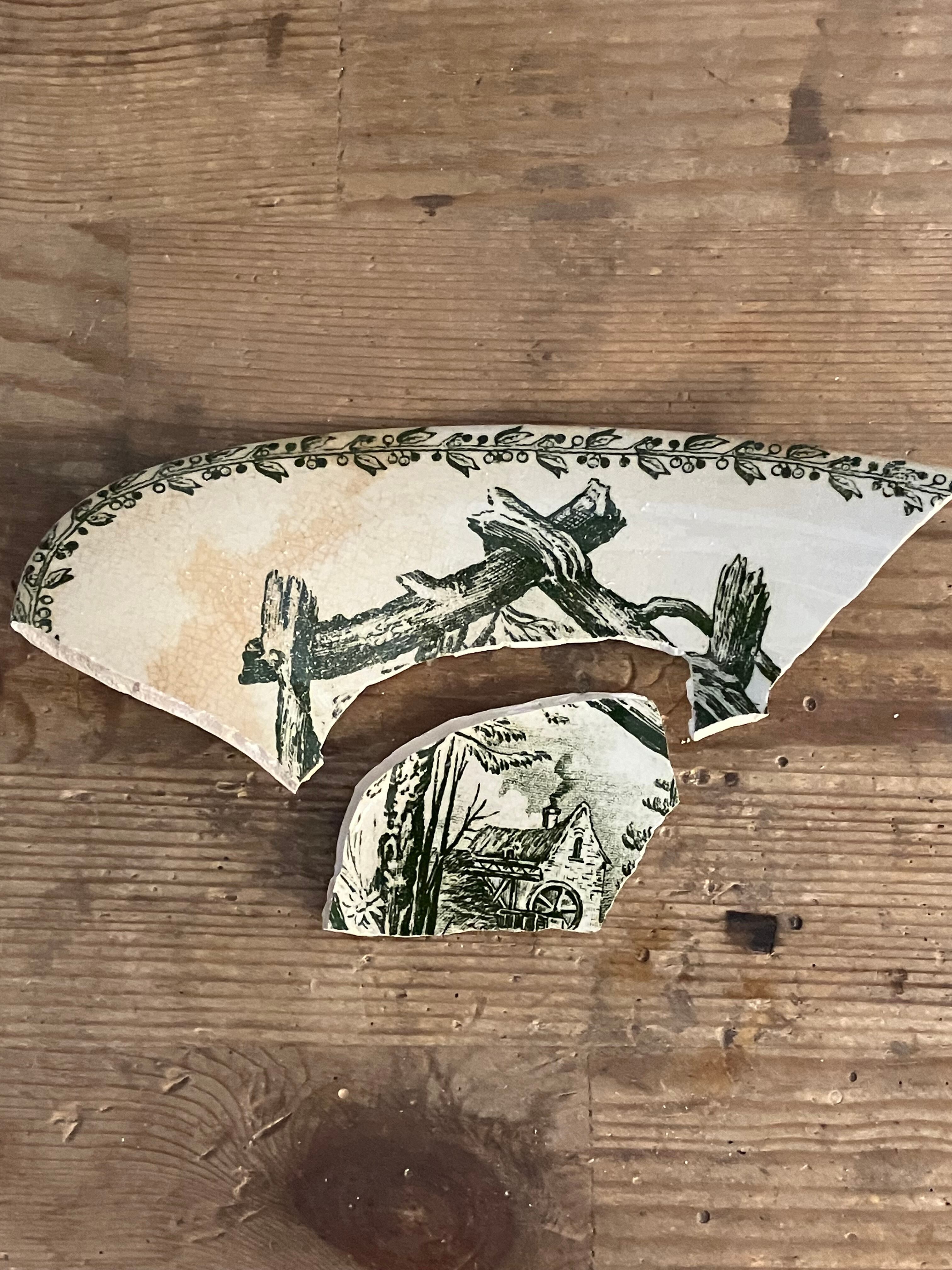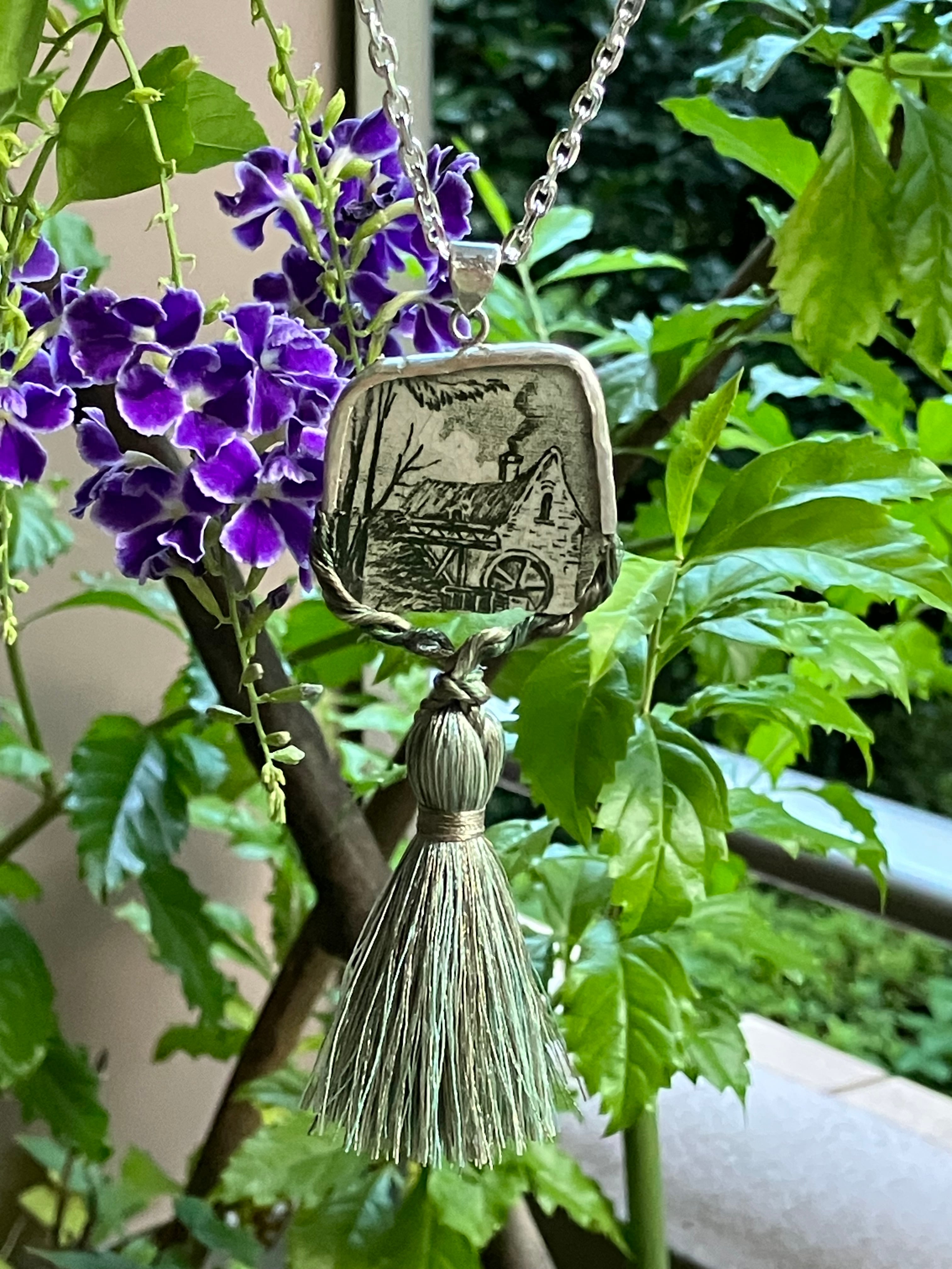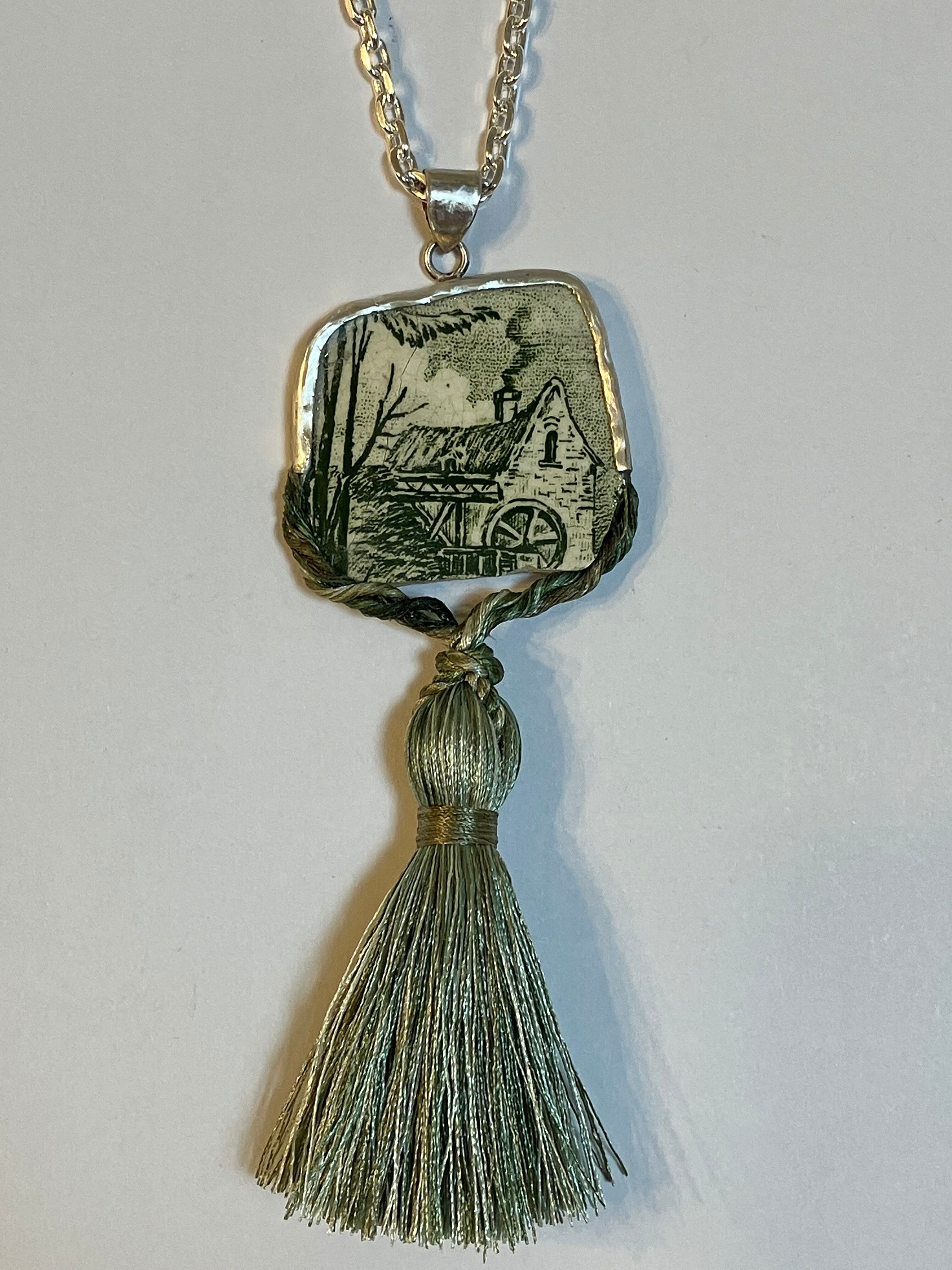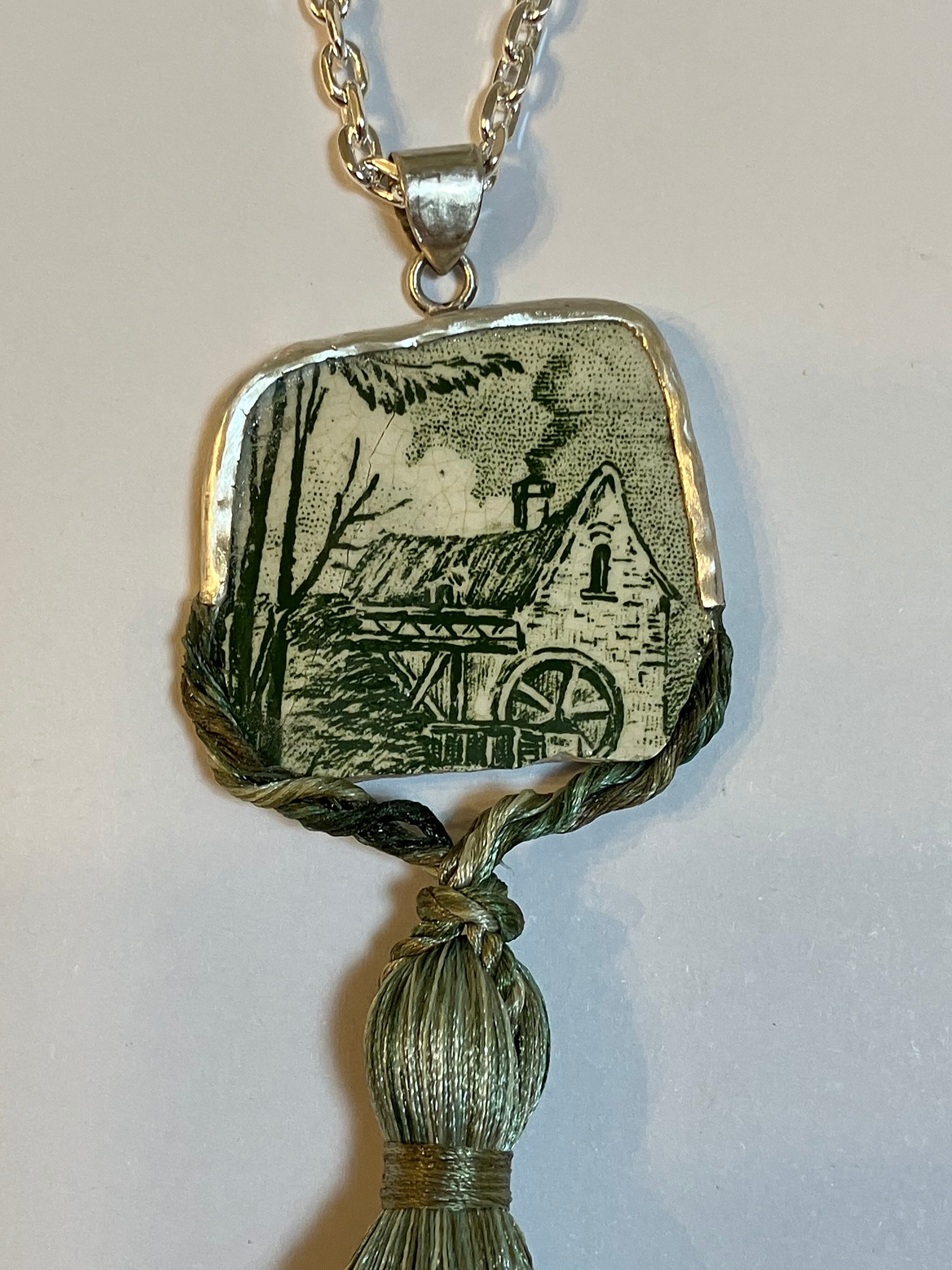 割れてしまったアンティーク陶器からリメイクしたペンダントです。
