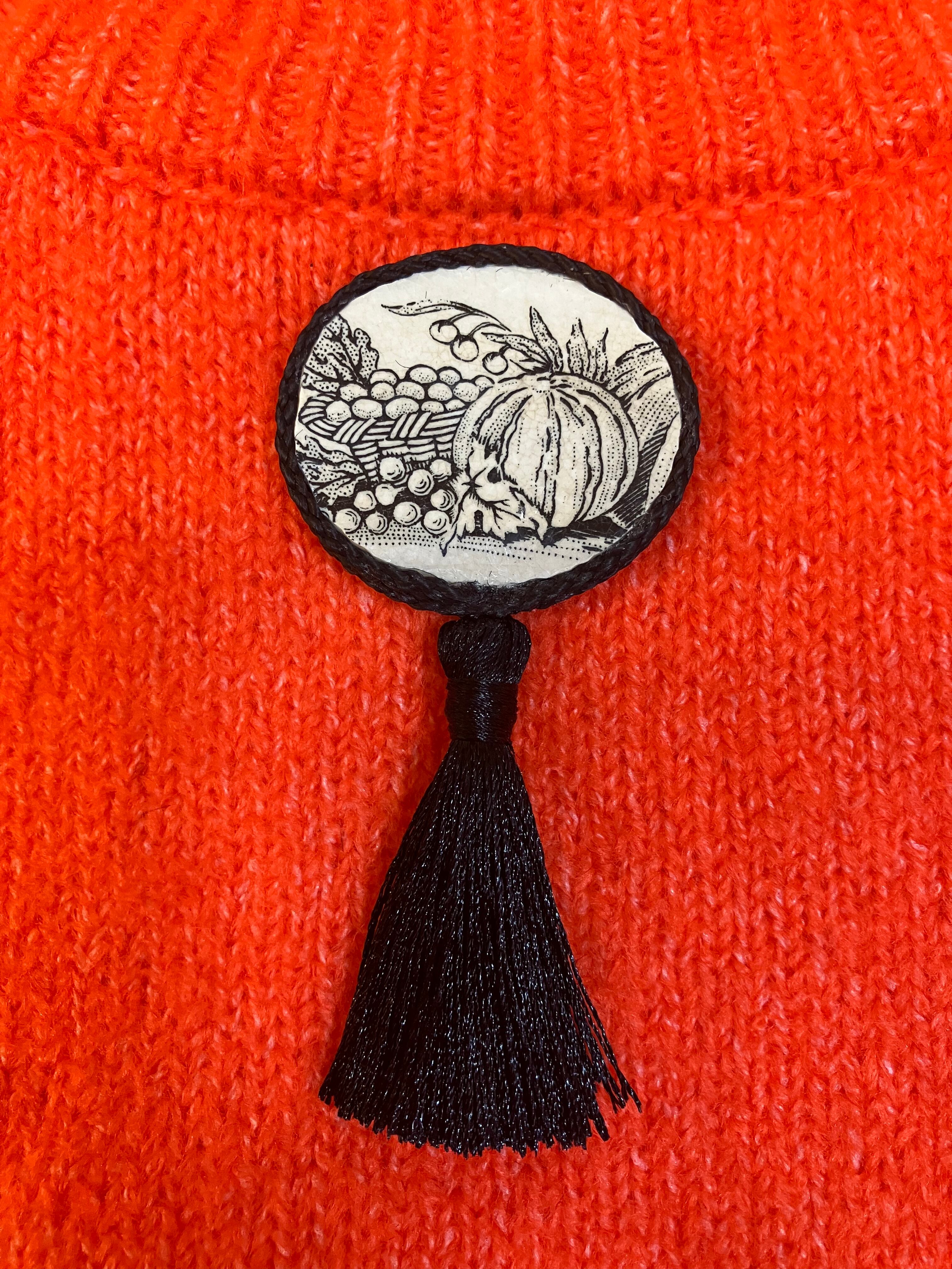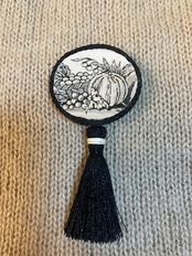 素材:アンティーク陶器、ブローチパーツ、タッセル等